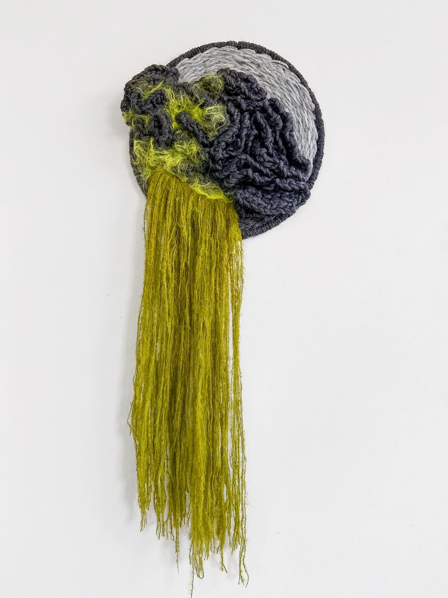 Lisa’s fiber art translates the wonders of nature into intricate, tactile art pieces. She brings her ideas to life using a blend of crochet, weaving, and felting, often combining these techniques in a single piece.