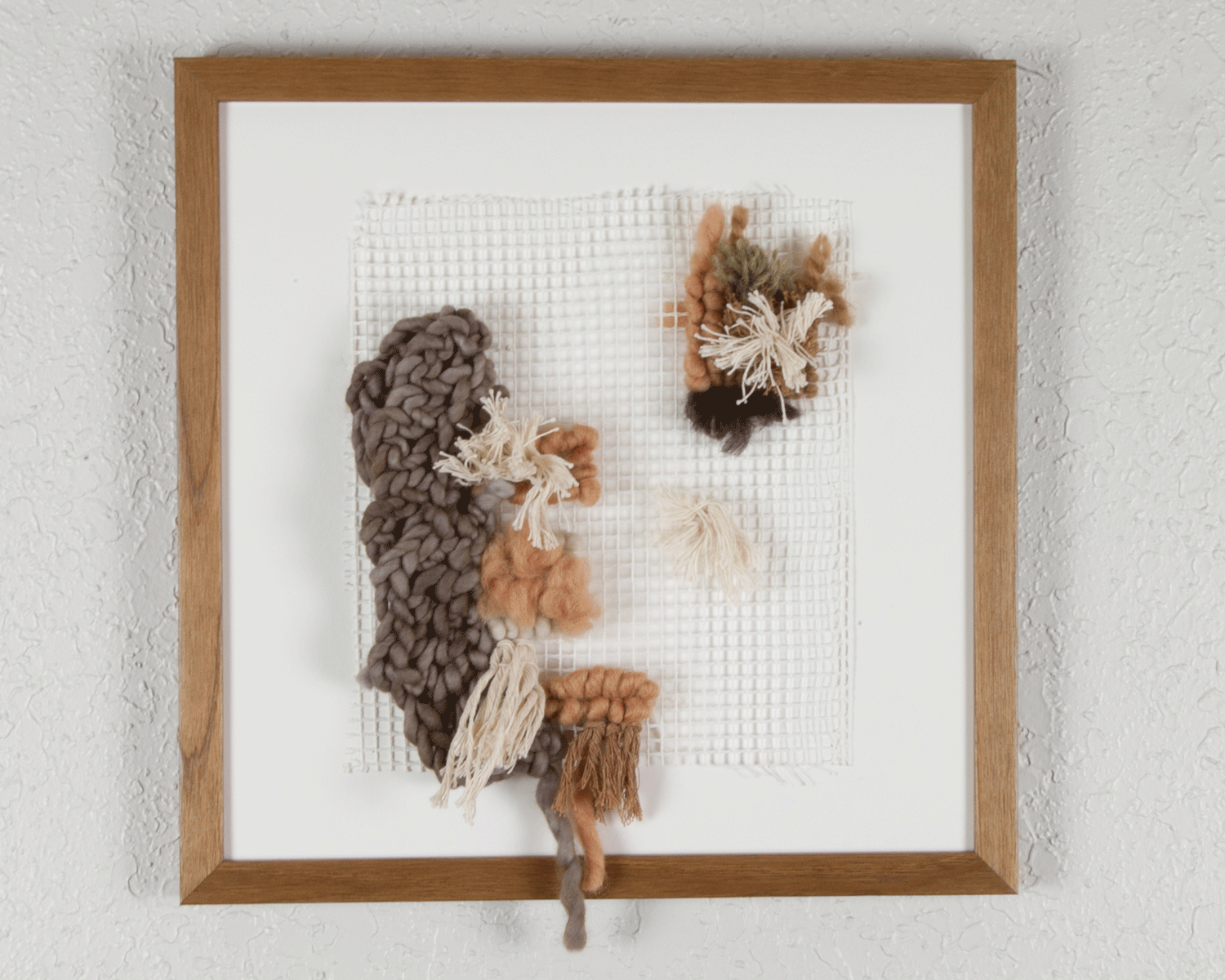 Framed fiber art made during my Mudhouse Artist Residency in Crete, Greece